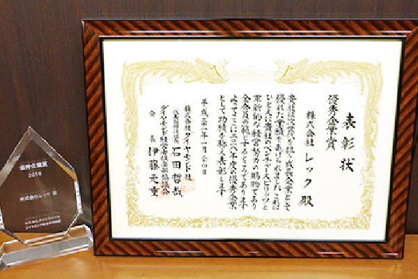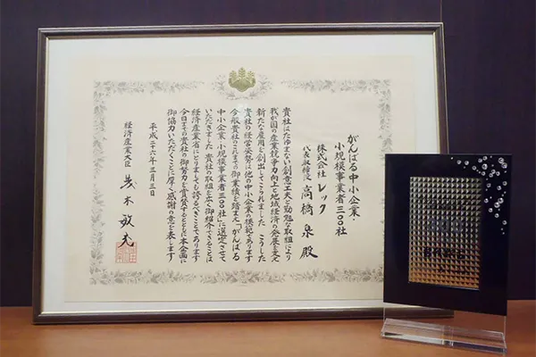- 経済産業省中小企業庁より「がんばる中小企業・小規模事業者300選」に全国の中小企業385万社の中から株式会社レックが選ばれました。