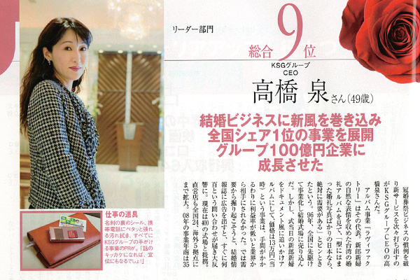 - 日経WOMANがその年、各界でもっとも活躍した働く女性に贈る賞です。総合順位9位に輝きました。