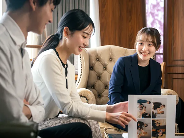 - 各事業ごとにお客様からアンケートを回収し、サービスの向上に役立てています。たとえば小さな結婚式では「チームHappy」というお客様相談窓口を設置。お客様の要望を叶える術を一緒に考えることで、オリジナリティあふれる挙式の提案を行っています。また、クレーム報告書の提出により情報を共有し、起こり得る可能性を想定した対策を行っています。
