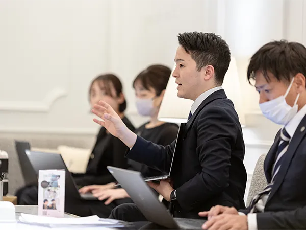 - ❶ 新卒研修…机上研修、OJT研修を通して、全体感に立てる人材育成を行っています。 ❷ 挨拶研修…挨拶・サービスについて徹底的に話し合い、深層心理に迫ります。 ❸ BIAブライダルコーディネーター養成講座…毎年数名のスタッフが参加。ブライダル業界全体へ貢献できる人材育成を目指しています。 ❹ マネージメント研修…社長と役員で研修を実施し、次期リーダーの人材育成を行っています。