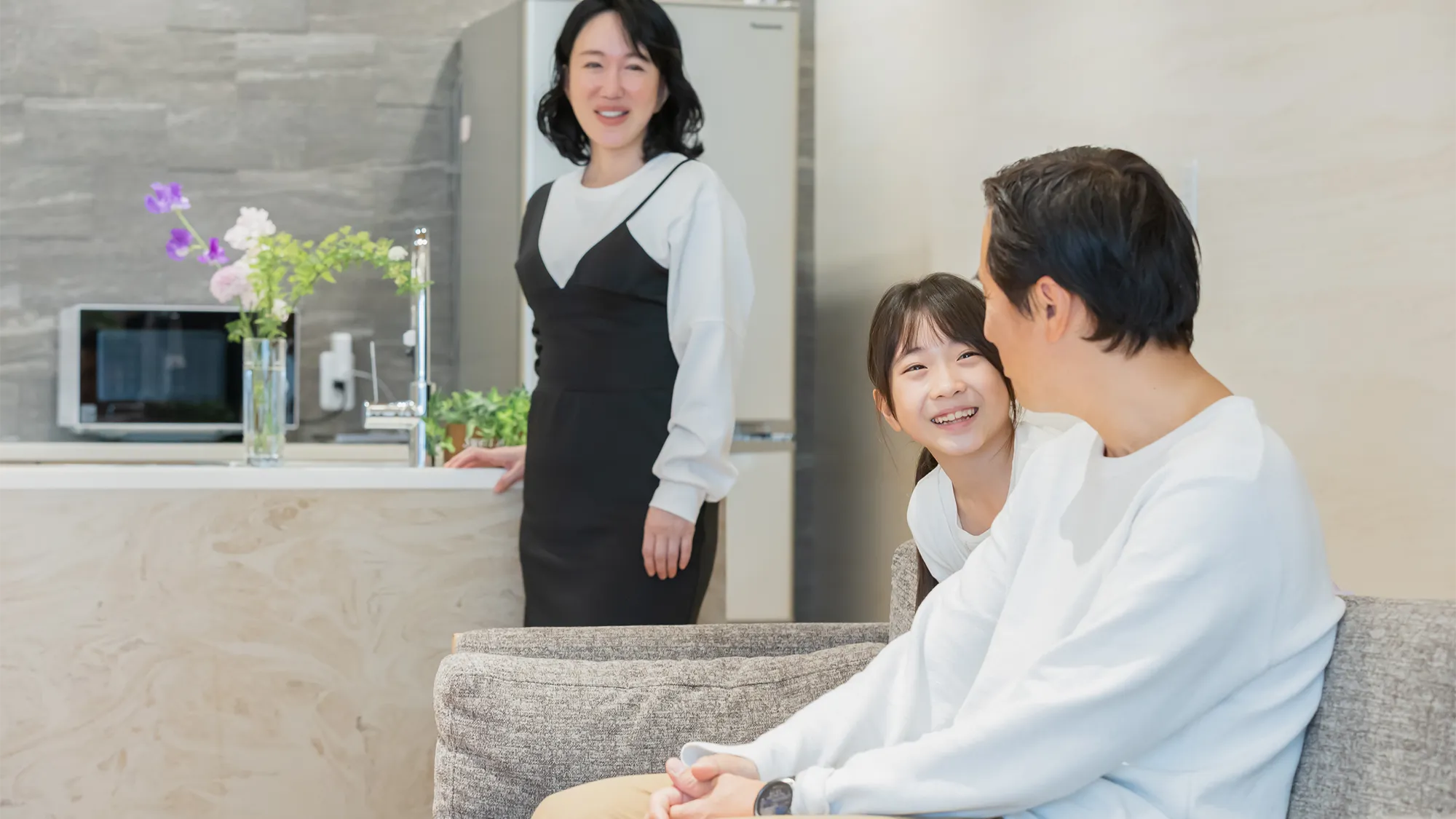 ファミリー葬は、家族葬専門の式場です。式場に隣接するようにリビングやダイニングキッチン、和室やバスルーム。他にはない、自宅にいるような式場で、あたたかいお葬式を。ゆったりと流れる時間の中で、最期のお別れの時をお過ごしいただけます。